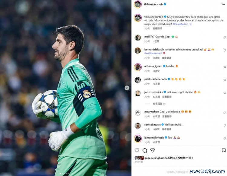 本场比赛库尔图瓦送出助攻,还戴上了队长袖标,赛后他也在社媒晒照写说念:“咱们用出色推崇得到了一场精彩的奏效。无意佩带天下上最佳俱乐部的队长袖标,感到绝顶慷慨。”
