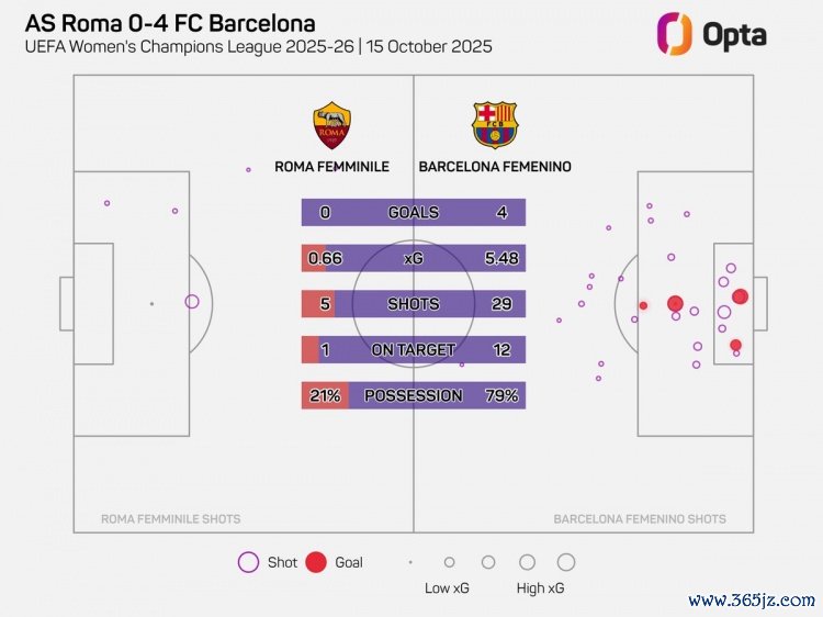10月16日讯 女足欧冠联赛阶段第二轮比赛,巴萨女足客场4-0大捷罗马女足。