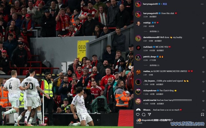 10月20日讯 本轮英超焦点战,利物浦1-2不敌曼联,马奎尔制胜,赛后,马奎尔更新社媒,晒出了我方制胜球的滑跪庆祝相片,并配文:我爱我这家俱乐部。