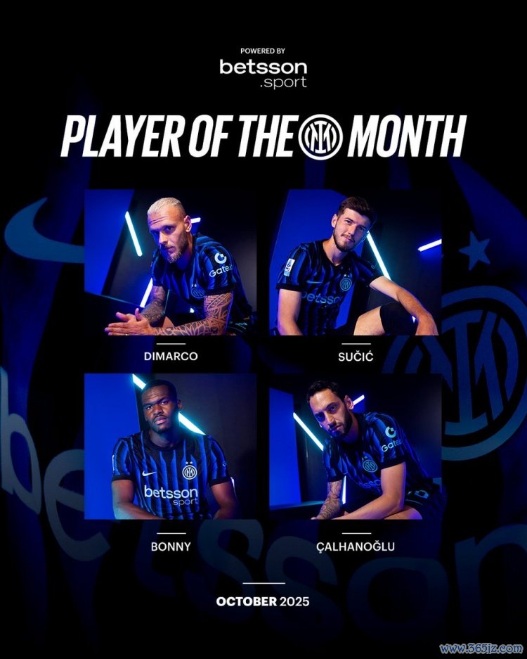 11月11日讯 国米官方公布10月队内最好球员候选,迪马尔科、佩塔·苏契奇、博尼、恰尔汗奥卢四名球员获提名。