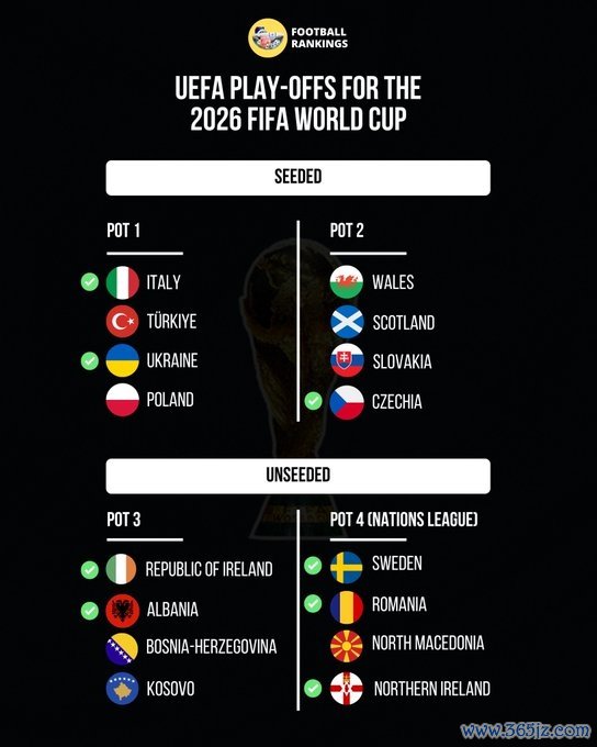 据外媒Football Rankings报说念,意大利已说明成为第一档种子队,将在附加赛半决赛主场迎战第四档球队,潜在敌手及出现概率为: