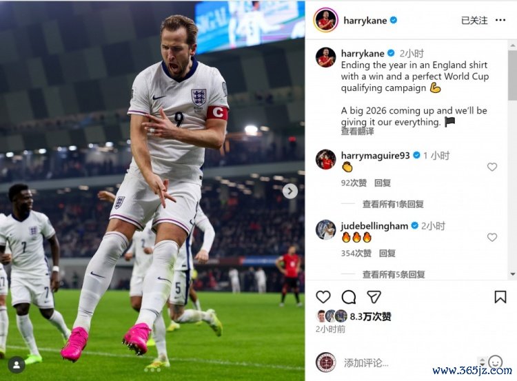 凯恩社媒晒出庆祝进球的相片,并写说念:“以一场得手和齐全的世初赛为本年的国度队征途收官,紧迫的2026年行将到来,咱们将负重致远。”