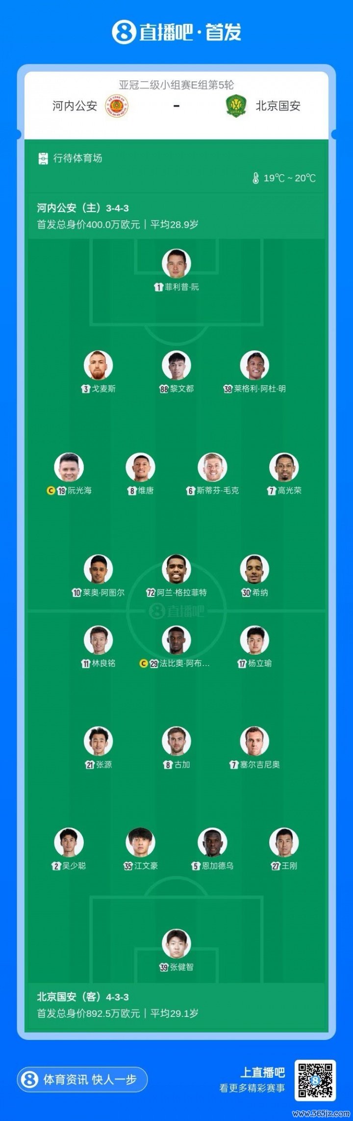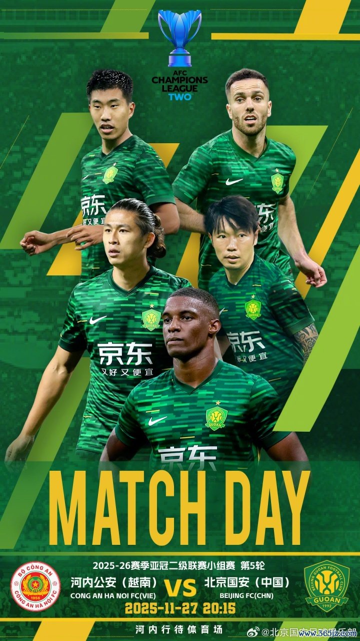 11月27日讯 北京时辰今晚20:15,亚冠二级小组赛第5轮,北京国安客场挑战河内公安。赛前,两边首发出炉。