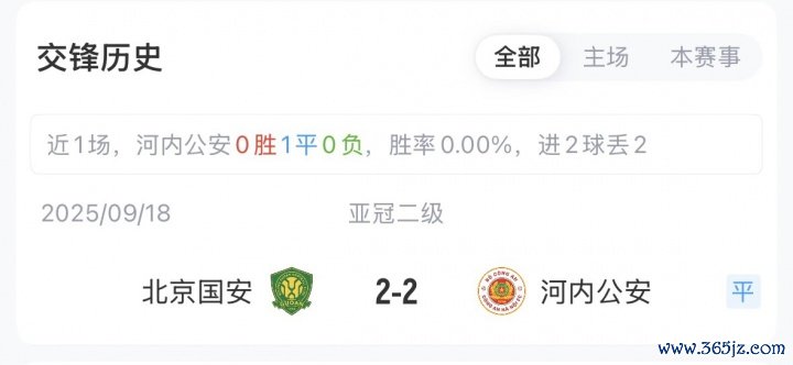 亚冠二级E组前四轮,北京国安1胜2平1负积5分,名轮番3,河内公安1胜2平1负积5分,名轮番2。