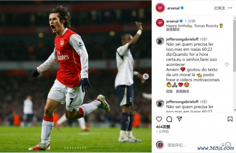 10月4日讯 今天是罗西基的45岁生辰,阿森纳官方为他奉上道喜。