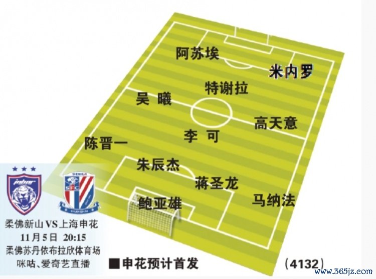 11月5日讯 亚冠精英联赛第4轮,上海申花将客战柔佛新山,《东方体育日报》揣度申花首发,鲍亚雄出任首发门将,锋线阿苏埃搭档米内罗。