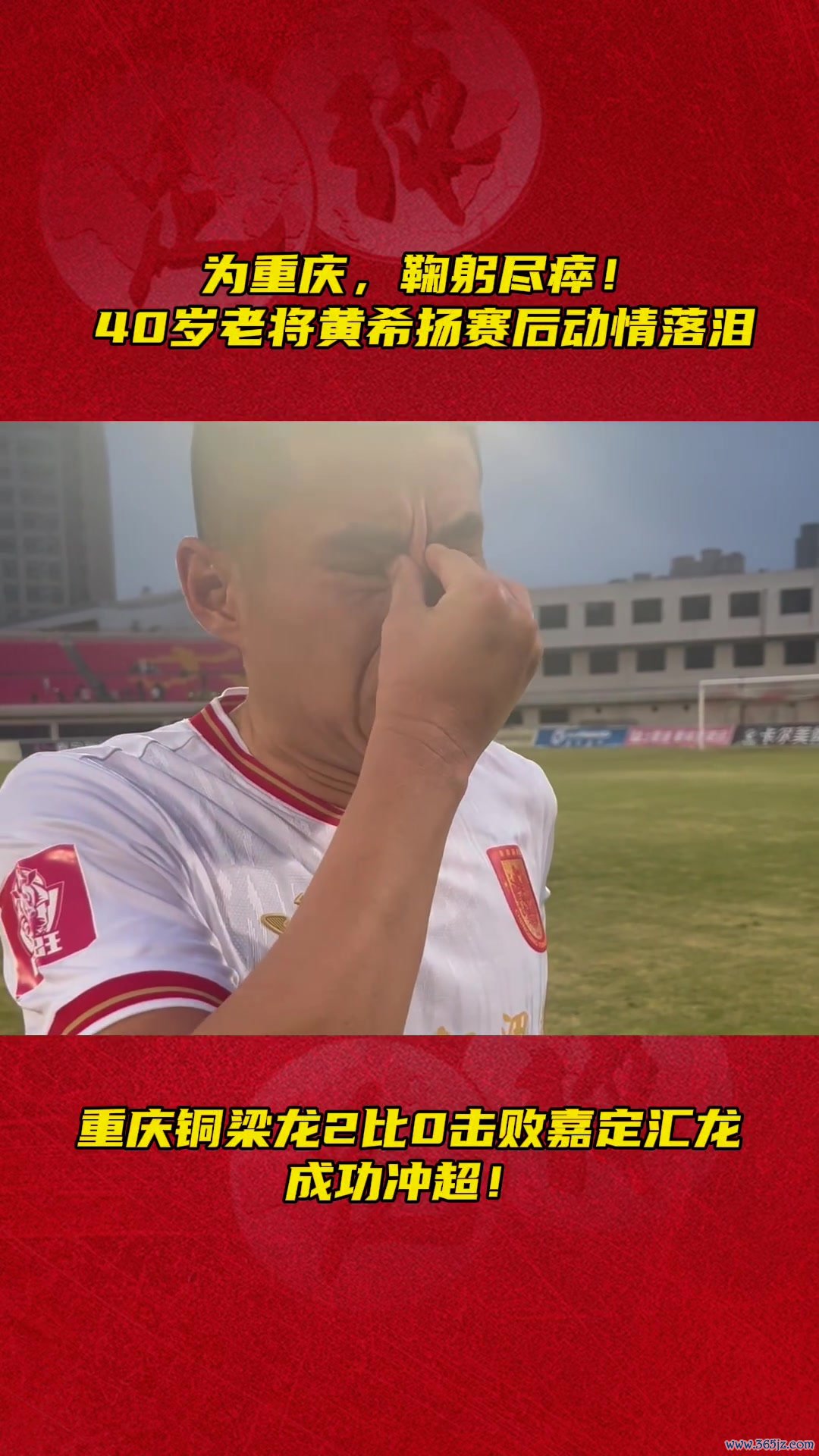 11月08日讯 中甲第30轮,重庆铜梁龙取胜升入中超,重庆球队时隔3年多再度登上中超赛场。据《足球》报记者鲁蜜报说念,40岁宿将黄希扬在现场泪崩。