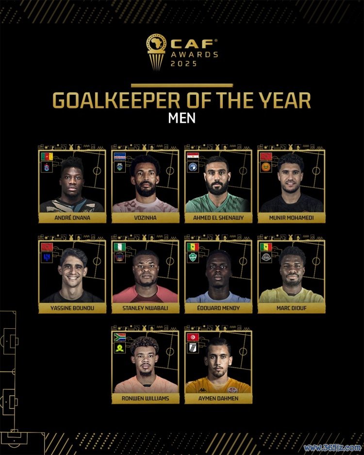 10月22日讯 非洲足联公布了年度最好门将候选名单,奥纳纳、布努、爱德华-门迪在列。