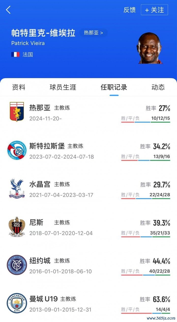 热那亚足球俱乐部官方文书,帕特里克·维埃拉不再担任一线队主教育。