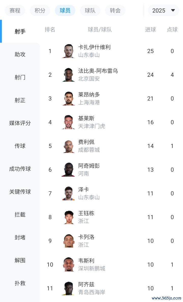 11月01日讯 大部分球队中超仅剩临了一轮,当今弓手榜上卡扎伊什维利25球领跑,同期0点球,法比奥只是逾期1球,王钰栋则是惟一上榜的原土球员。