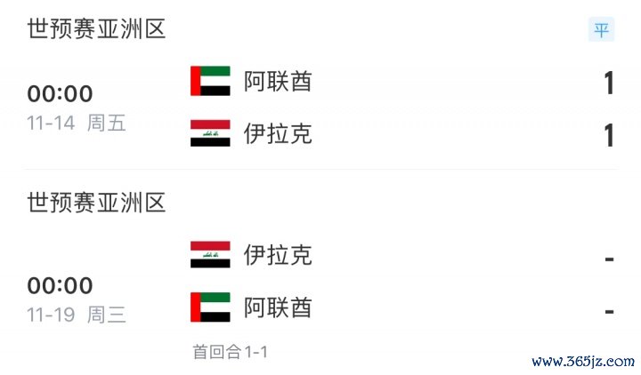 11月14日讯 世初赛亚洲区第五阶段首回合,伊拉克与阿联酋1-1战平,两边在的第二回合较量前不绝保合手奥妙均衡。