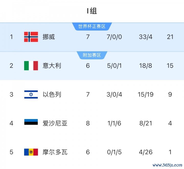 现在挪威在先赛一场的情况下跳跃意大利6分,如若意大利在晚些的比赛中未能打败摩尔多瓦,那么挪威将径直晋级天下杯。就算意大利顺服摩尔多瓦,况且在临了一轮与挪威的径直对话中取胜使两队积分换取,但两队之间还存在19个净胜球的深广差距,不错说挪威照旧基本上晋级了天下杯。