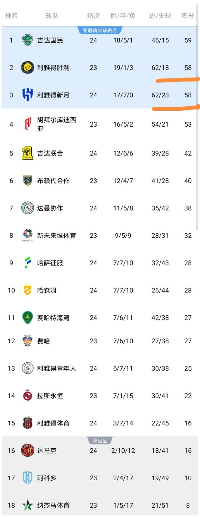 2月28号凌晨刚更新的足球球队排名,利雅得新月60分排第一,吉达国民59分第二,胜利58分第三。就差1分,三支战队你上我下,两天内换了三次榜首。不是谁踢得多好,而是谁没失误操作——赢球不算数,输一场就掉出争冠区。