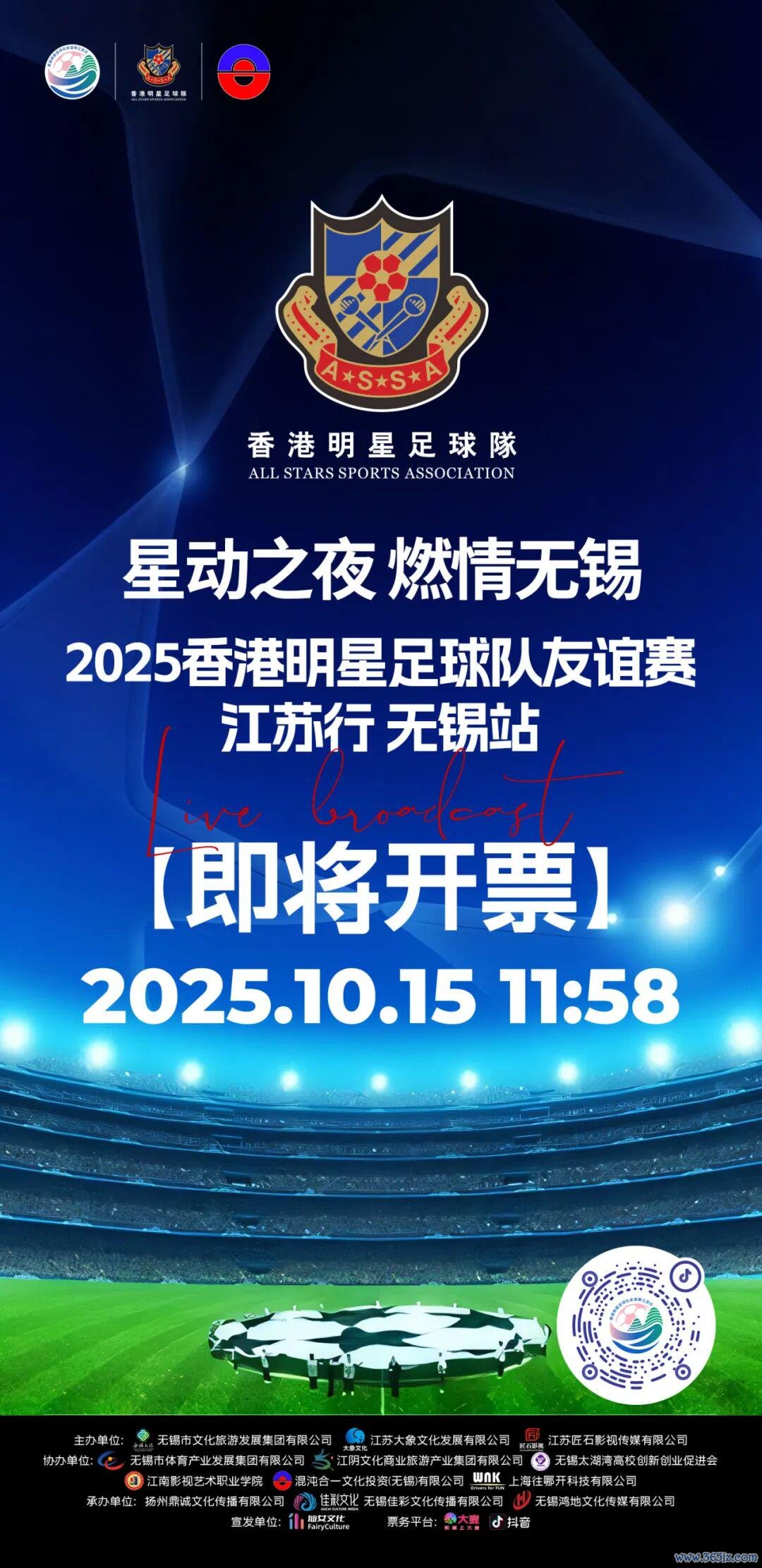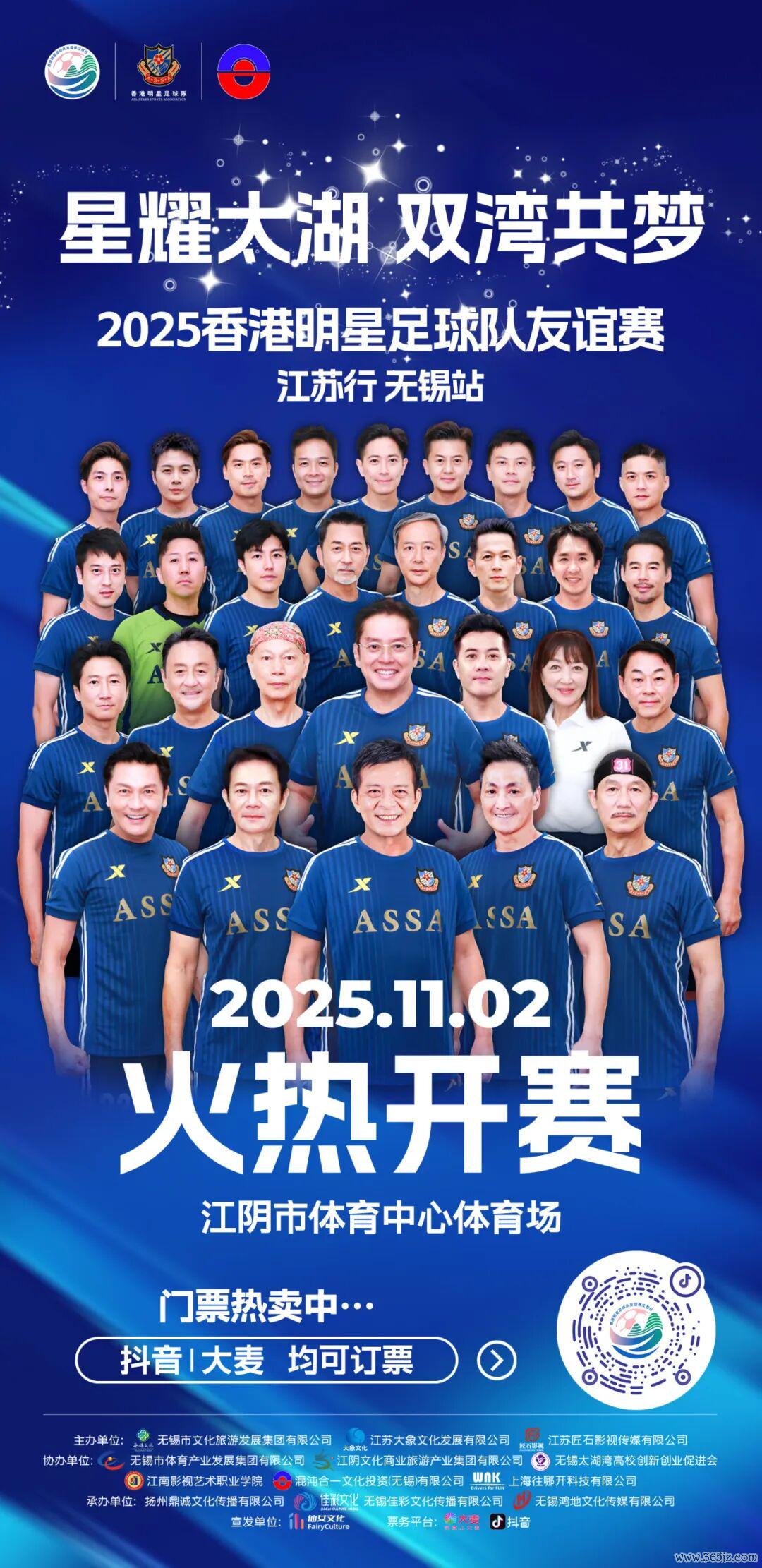 购票渠谈:抖音或大麦搜索【2025香港明星足球队友谊赛江苏行——无锡江阴站】立即购票