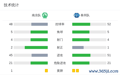 第71分钟,泰州队角球契机,王振宇将球蹭进球门,泰州队1-1南京队