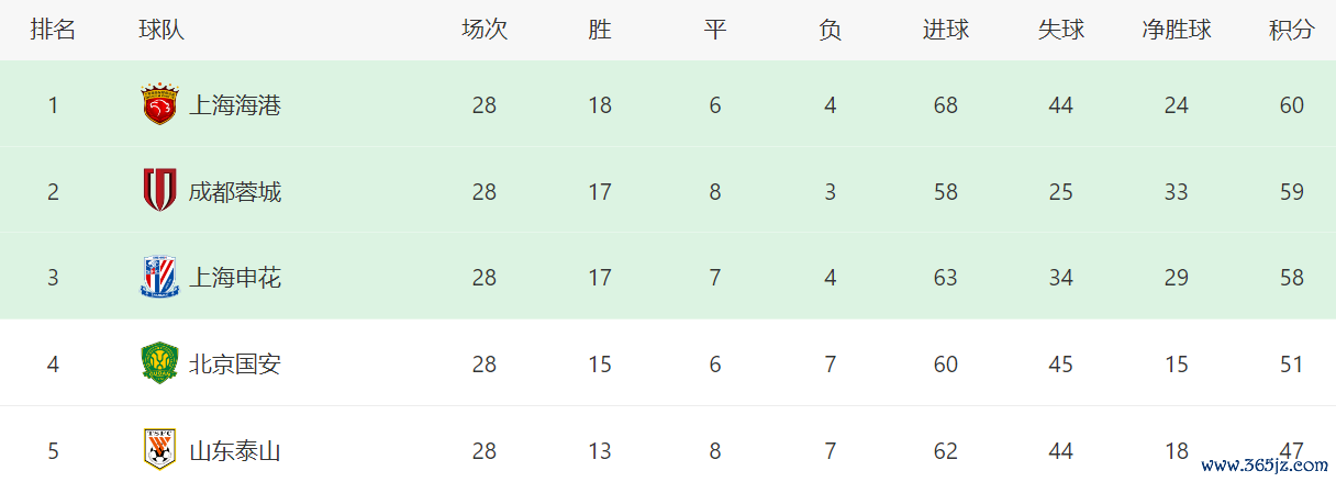 赛前积分榜,上海海港积60分高居第一,成王人蓉城积59分位列第二,上海申花积58分排行第三,三队独一2分的差距,争冠止境强烈。