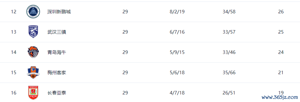 28轮之后,保级所在变得愈加开朗,深圳新鹏城、武汉三镇基本完成保级任务。青岛海牛(21分)、梅州客家(20分)、长春亚泰(19分)争夺终末一个保级限额。