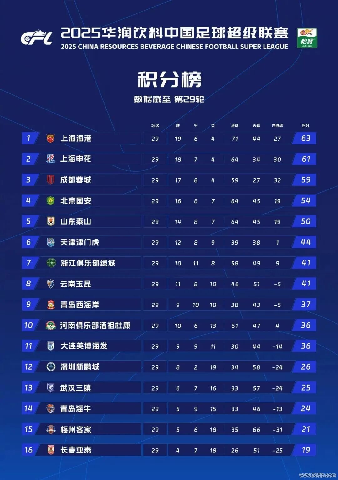 11月22日下昼3时30分,2025赛季中超联赛八场收官战将同期鸣哨。冠军包摄悬于一线,左迁限额尚未揭晓,两大中枢悬念留至终末一轮,这在连年中超赛场实属萧瑟。当上海双雄的争冠博弈遇上梅粤两队的保级生苦战,一场遮蔽荣耀与存续的终极对决,将为这个赛季画上悬念迭起的句号。与此同期,已完成保级任务的武汉三镇将迎来本赛季的主场收官战,敌手是在积分名次上“无欲无求”的山东泰山。